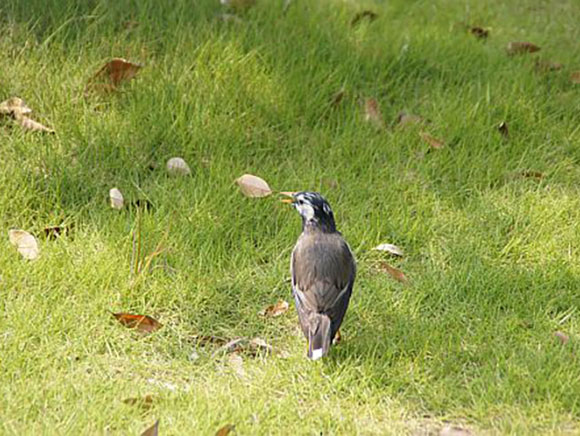 ノリタケの森では、開園当初から一年中見ることができ、芝生などで採食しています。鳴き声:チュチュン、チュチュン