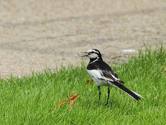 長い尾羽を上下に振りながら歩く姿が特徴的です。開けたところを好み、芝生の広場や畑、都会の駐車場でも見かけます。