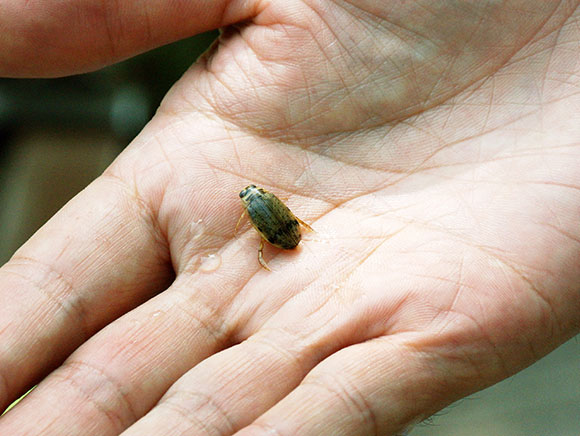 他のゲンゴロウと比べて水の汚れにも強く、街中でも見かけます。成虫も幼虫も、水中の小動物を食べます。水面から直接飛び立てるゲンゴロウは、本種だけだそうです。