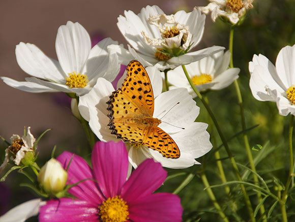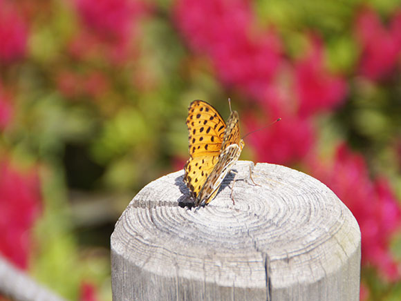 メスの前バネの先が黒く目立ちます。幼虫は本来スミレの葉を食べて育ちますが、最近では同じスミレ科のパンジーを食べて、分布を拡大しているようです。