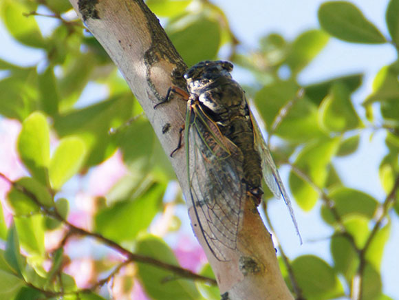 ノリタケの森では、高い木の先端などでよく鳴いています。鳴き声:キリリ、コロロ、ジュイーなど