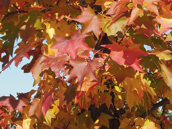 秋には緑、黄色、赤など彩り豊かな紅葉が楽しめます。