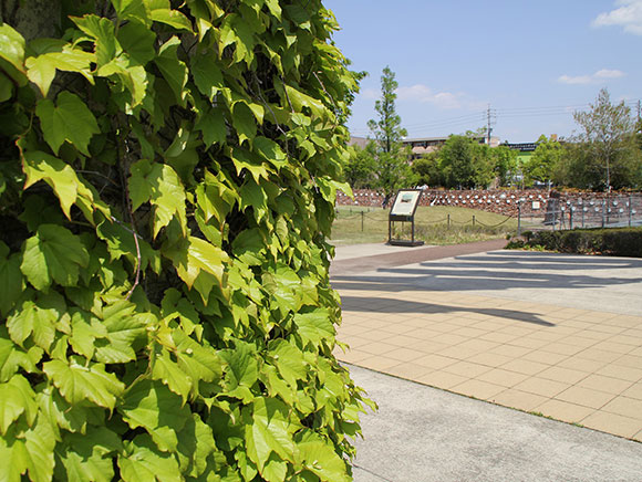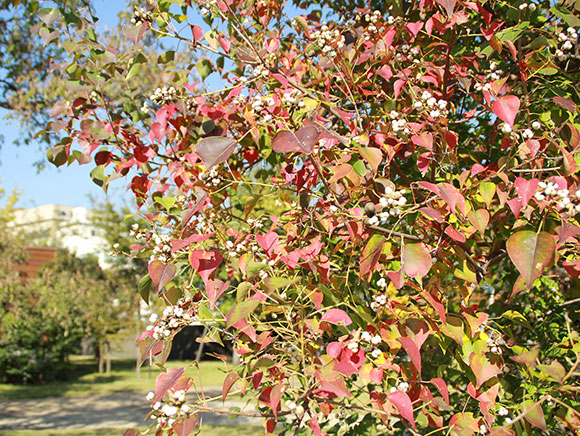 ノリタケの森では、ビオトープ近くの草地や駐車場に植えられており、冬に熟して赤くなった実をヒヨドリなどの鳥が食べに来ているかも知れません。
