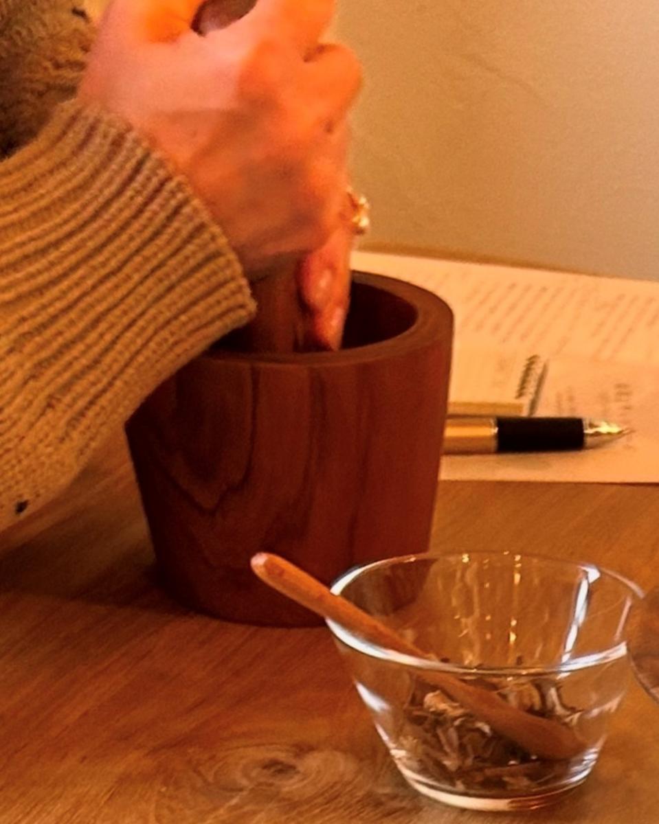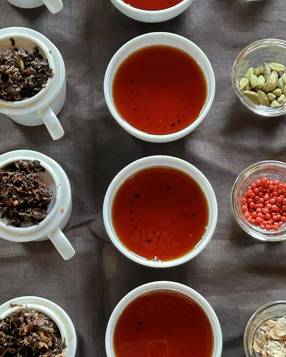 スパイスの香りに包まれながら、前田さんが厳選したスパイスや茶葉を使ってブレンドし、世界にひとつだけのチャイを作ります。
