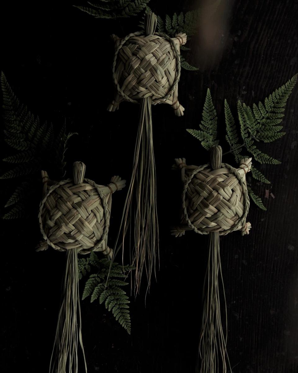 手のひらで藁を編み、ひとつのかたちに育てていく特別な時間。縁起のいい「青藁の祝亀」の手仕事をお楽しみください。
