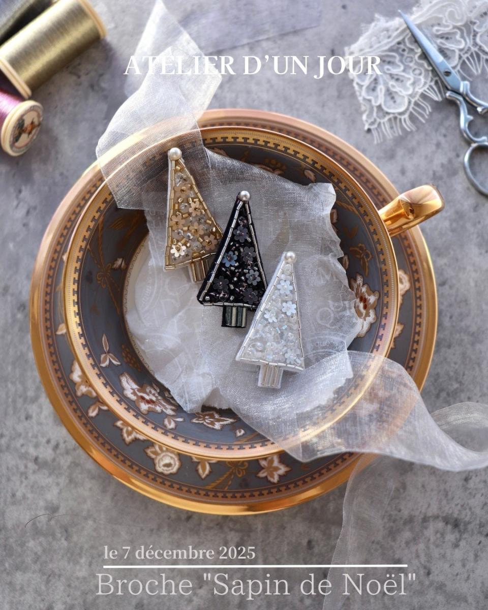 【オートクチュール刺繍 ワークショップ Broche“Sapin de Noël”~クリスマスツリーのプチブローチ~】