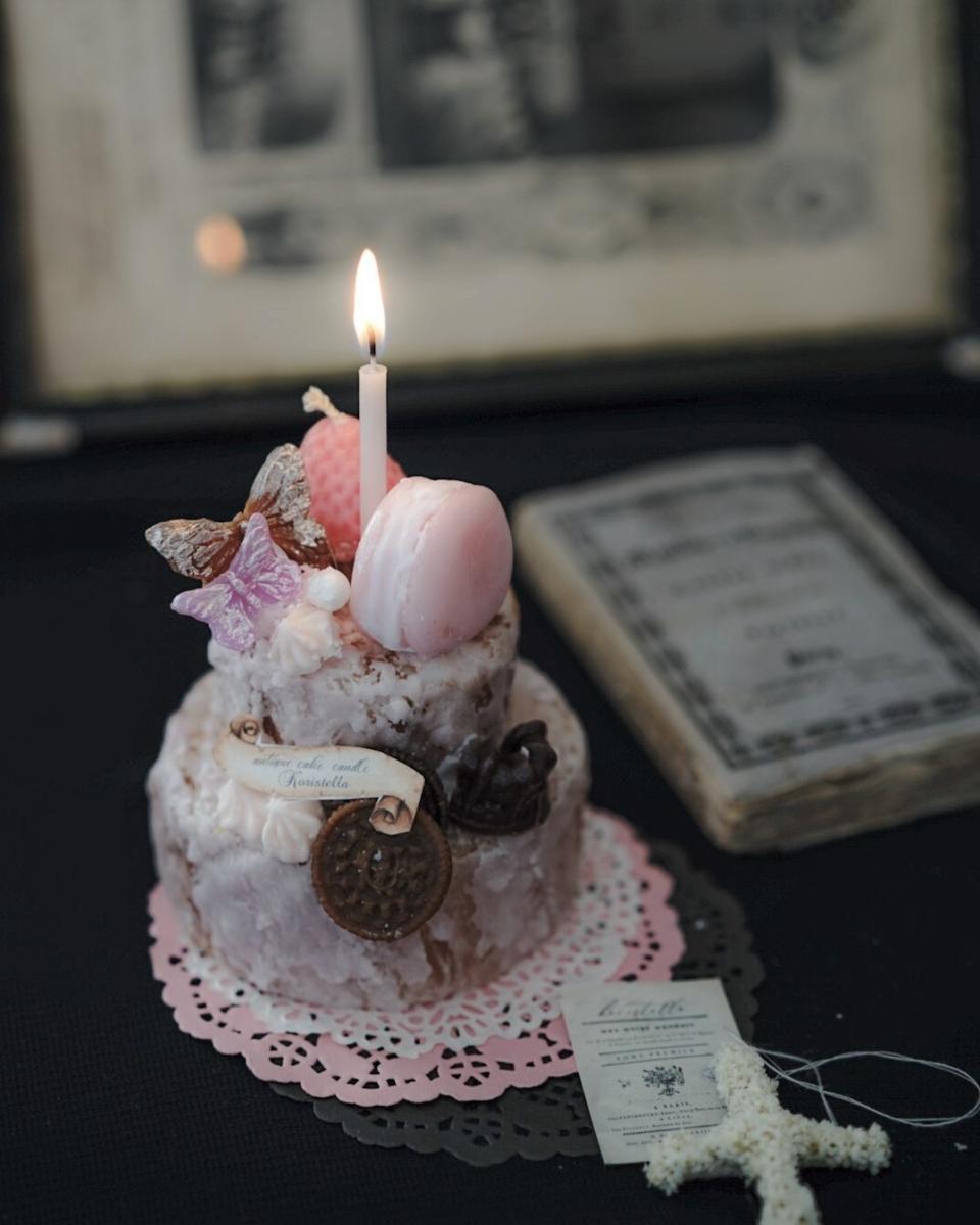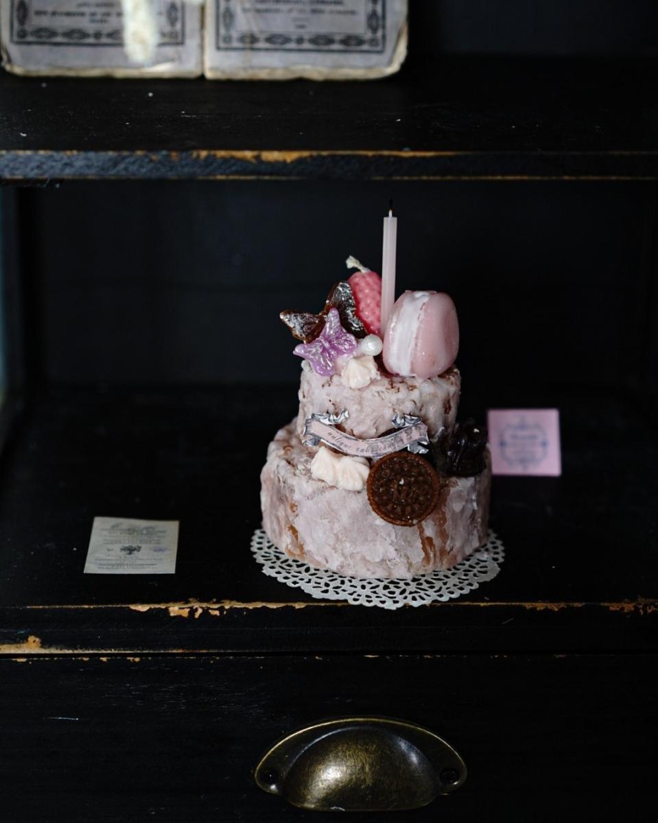 可愛くなりすぎない、くすみカラーでアンティーク調に土台を仕上げ、本物のケーキのようにナッペ(クリームを塗る作業)を施したり、お菓子のパーツをつけたりと、まるでパティシエになったような気分を味わえます。