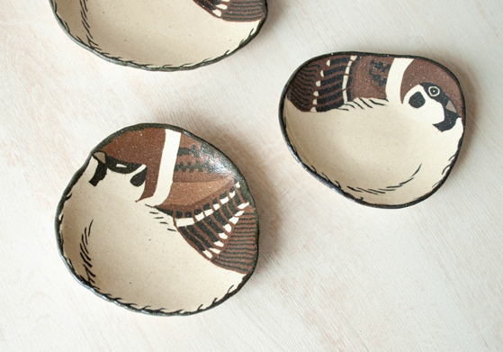 複数の色の粘土を組み合わせて模様を描く「練り込み技法」を用い、動物を描いた器を中心に制作しています。