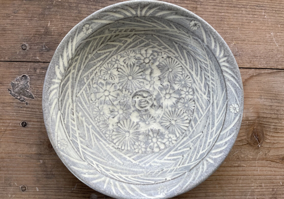 しのぎと化粧土の風合いをいかした花器など、ゆったりとした時間を過ごすためのうつわを制作していきたいと思っています。
