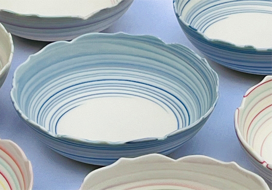 古くから伝わる「三島手」という技法に惹かれて、そこに自分なりの感覚を重ねながら製作しております。