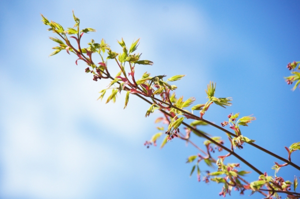 夏に小さな薄紫色の花をたくさん咲かせる低木です。
