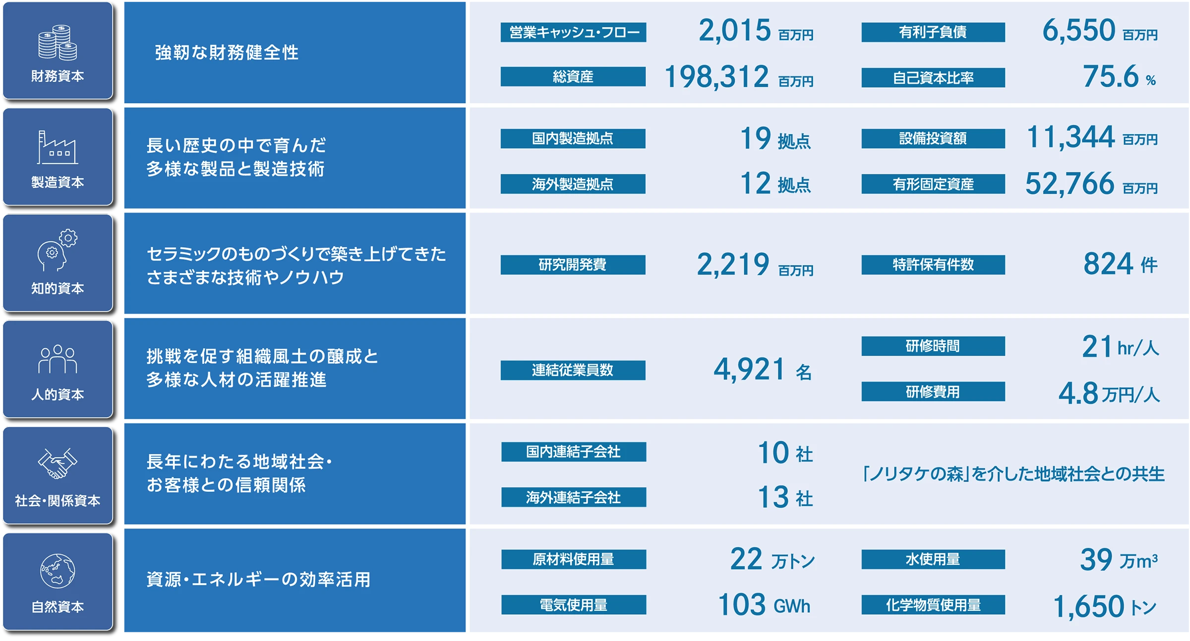 これらの資本を活用し、持続可能な社会の実現と企業価値の継続的な向上を目指します。