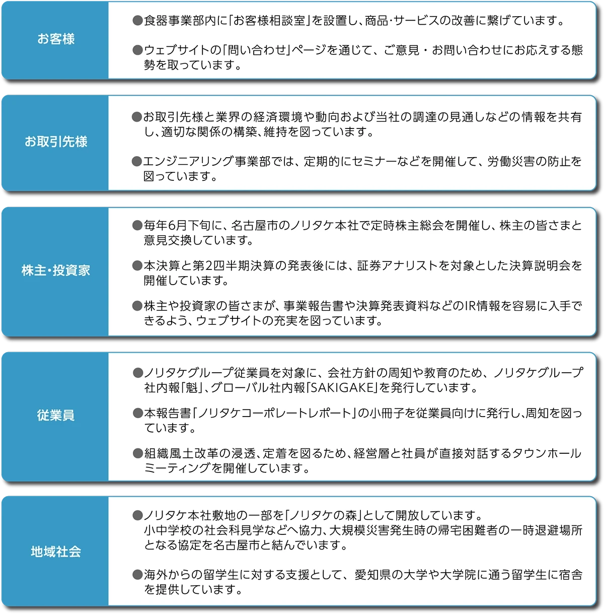 ノリタケグループはステークホルダーの皆さまの声を真摯に受け止め、企業活動に繋げ、企業価値の向上を図ってまいります。